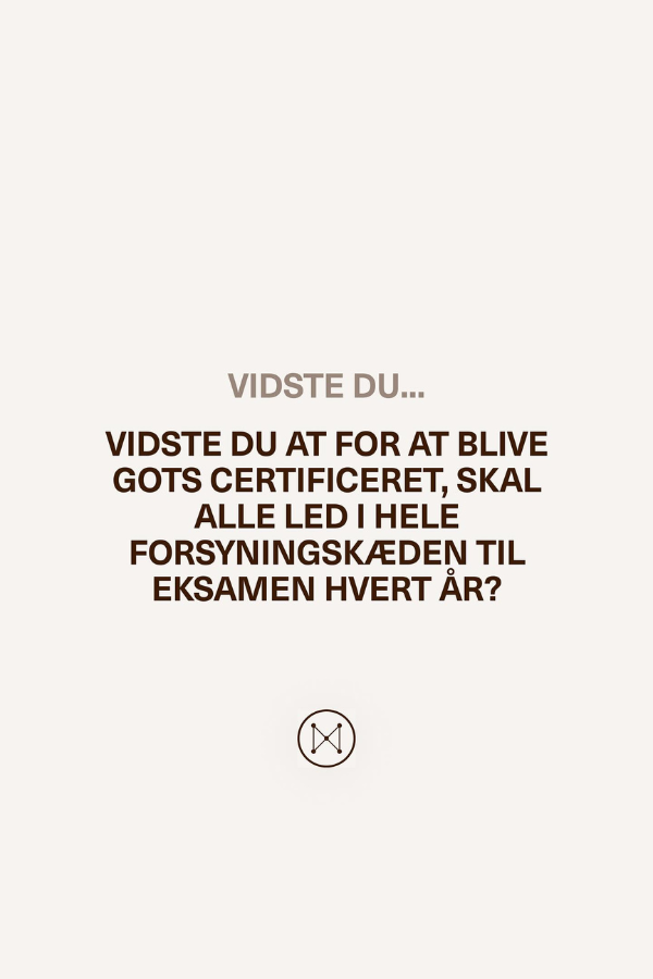Vi har gjort det nemt for dig at finde alle vores GOTS-certificerede produkter. Certificeringen betyder, at tøjet er produceret i overensstemmelse med Global Organic Textile Standards. Dette sikrer tekstilets holdbarhed og de sociale produktionsforhold gennem hele værdikæden.